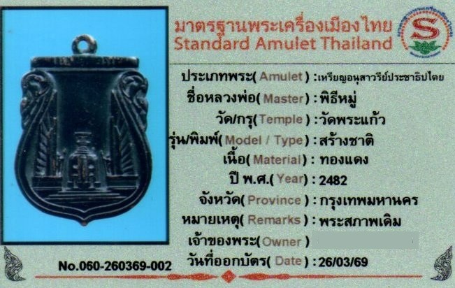 「建國紀念幣」民主紀念碑版 於佛曆 2482 年在曼谷玉佛寺舉行盛大的開光加持法會。這是一枚歷史悠久、法脈顯赫的好牌,由舊時代多位頂尖名師共同加持。